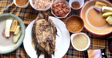 Para quem gosta de novos sabores, O Cassanga Bar abre das 9h à 1h, para os que começam cedo e acabam tarde. Na nossa ida, começamos pelo Couvert a Cassanga, composto por variados pães e patés com azeitonas, acompanhado com uma lambreta fresca para esquecer o calor. Os sabores e a dose do paté estavam balanceados, e antes da última fatia, o prato principal chega ao local: Bacalhau à Cassanga, sendo o lombo frito ao ponto das lascas se separarem. É gratinado com queijo e fiambre, que o que enriqueceu o peixe com um sabor a bacon. O molho reduzido de vinho rosé é uma maravilha; o bacalhau é servido com cebolada e batatas fritas à portuguesa, uma combinação surpreendente. Não tínhamos como pausar os talheres.