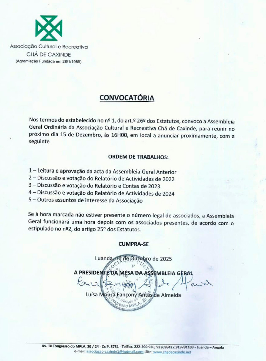 Há, entretanto, movimentações no sentido de se adiar esta reunião para o mês de Janeiro de modos a conseguir-se uma maior mobilização dos associados, tendo em conta o momento crítico que se vive.