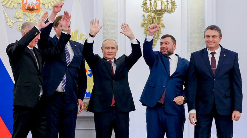 A assinatura de Putin dá início ao processo formal de absorção das áreas da Ucrânia em questão. Na quinta-feira (29), Putin assinou outros decretos, reconhecendo a independência das regiões ocupadas de Kherson e Zaporizhzhia – uma formalidade necessária antes de serem anexadas.