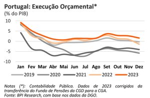 Entretanto, o crescimento da economia em 2023 de 2,3% gerou margem de confiança nos consumidores relativamente à evolução da economia. Portugal apenas foi ultrapassado por Espanha na performance do crescimento económico. Os dados macroeconómicos dão um bónus à governação do primeiro-ministro demissionário António Costa, com a dívida pública em face do Produto Interno Bruto a cair abaixo dos 100%, o melhor resultado dos últimos 14 anos e que permite retirar Portugal dos países mais endividados da Europa. Mas será que há vida para além do défice e da dívida pública? O Fundo Monetário Internacional (FMI) atento a estas expetativas, alertou para o risco de derrapagem orçamental em ano de eleições.