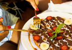 O Crepe Ville vem despertando a curiosidade do público gastronómico luandense há algum tempo. Conta agora com dois espaços na cidade, sendo o mais recente localizado no segundo andar do Shopping Fortaleza, enquanto que o primeiro foi aberto no Patriota. Visitamos o espaço do Shopping e gostamos do que encontramos. O espaço, apesar de pequeno, é aconchegante e ideal para pequenos-almoços ou lanches rápidos. Achamos a decoração original e o ambiente agradável e calmo, apesar de estarmos dentro de um centro comercial.