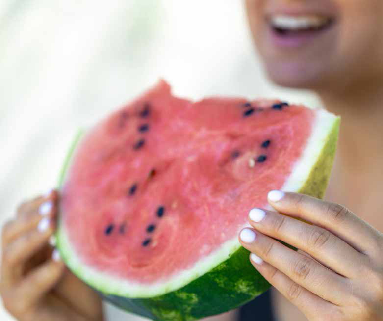 Podemos encontrar mais de 118 ml de água em 154 g de melancia.